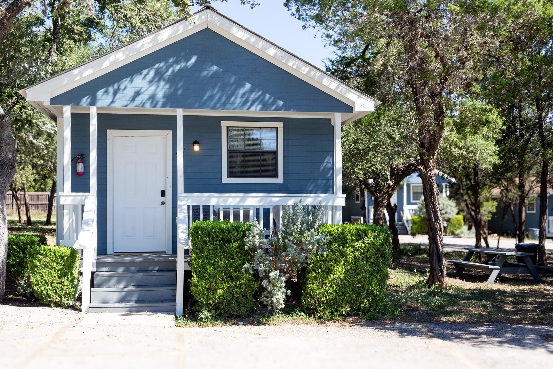 The Claire Hotel (formerly Canyon Lake Cabins and Cottages) is a charming retreat nestled in the Texas Hill Country. After acquiring the property in 2023, French Cowboys Hospitality began a thoughtful renovation aimed at elevating the guest experience while preserving the charm of its natural surroundings. A major focus of the project was the transformation of the Wedding Event Center and Bridal Suite to better support private event bookings and enhance the venue’s appeal. The reception space received a complete interior makeover, including fresh paint, new chandeliers, renovated restrooms, and updated furnishings. The the outdoor ceremony area is set against a beautiful background of Canyon Lake, which was enhanced with subtle landscaping improvements. Across the grounds, upgrades included new exterior paint to reflect the updated brand identity, refreshed poolside furnishings, new lighting and fencing around the pool, and a custom monument sign to improve visibility and sense of arrival. The result is a more cohesive, elevated experience that blends relaxed Hill Country aesthetics with refined hospitality design.